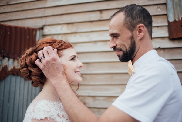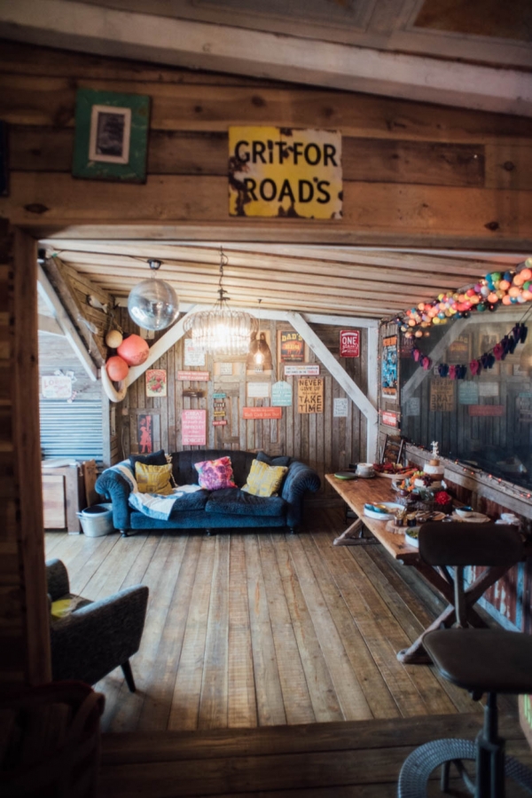 Champagne and homemade canapes greeted guests post-ceremony, which was followed by a barbecue of chicken, salmon steaks and homemade burgers alongside a selection of fresh bread and mixed salads. Fresh fruit pavlova and sticky toffee pudding provided the sweet endnote, followed by a five-tier mixed cheese wheel cake. The Party Shack provided the atmospheric space to dance the night away as the newly-weds celebrated their union with family and friends into the small hours.