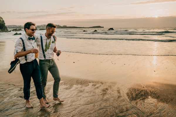 Alex and Tom first met at a friend's 21st birthday party while studying at Cardiff University. Years later, Alex proposed with a hand-penned poem for Tom on a quiet beach in north-west Spain.