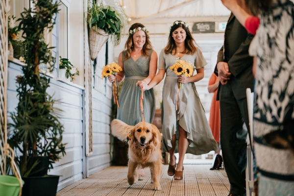 Alex and Tom's dogs walked them down the aisle alongside their 'groomsmaids' and mums for their "short but sweet" midday ceremony, making for a memorable and emotive moment as they took their steps toward married life.