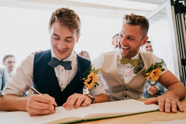 "Another important part of the day for us was being able to acknowledge how fortunate we are today, in this country, to have equal rights to love and marry who we want. This is sadly not the case for everybody, and so our first toast as a married couple was to those people not able to celebrate their love in this way," says Alex.