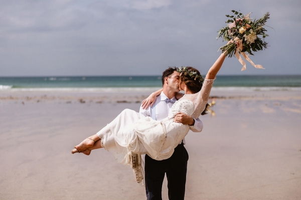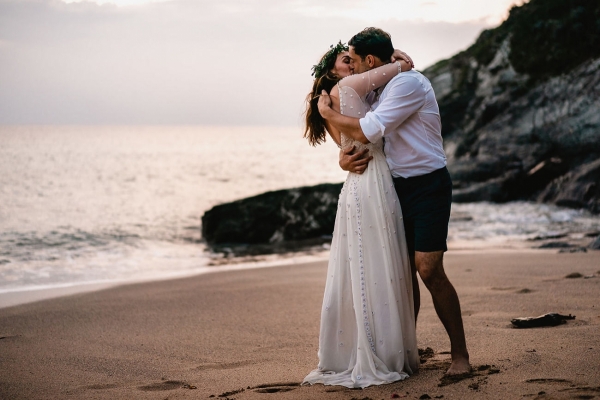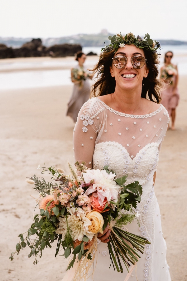 From the outset, the couple were armed with a clear vision for their day: 'a smallish, casual, beach wedding vibe', which led them on a venue hunting trip to Thailand before Luke discovered Lusty Glaze. 'My family go to Cornwall every year in the summer and it always feels like home, so off we went for a weekend visit from Essex to Newquay and surfed, had dinner at Lusty and left with the biggest smiles on our faces!' she says.
