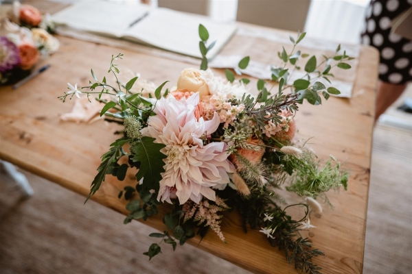 The flowers were a central component, perfectly matching Charlee's brief of 'elegant, natural flowers that reflect British beauty with lots of foliage and sea-like colours, but also bright and tropical plants that remind me of being in Thailand, and scents of eucalyptus and lavender!' that was achieved by the stunning mix of dahlias, stocks, ferns and shells that adorned the tabletops.