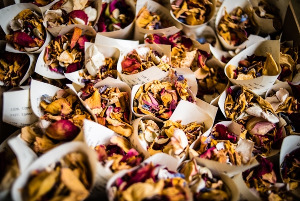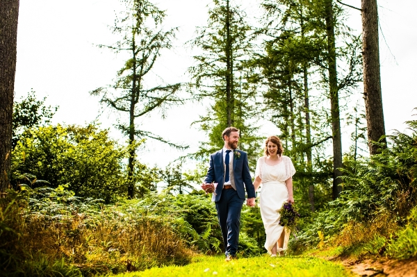 Picking a starting point of summer for their seasonally themed woodland wedding, the pair used the flowers as a key component for achieving a beautifully 'green' look. "We carefully chose flowers and foliage that was abundant and available locally," explains Rachael. "We made sure that it was recycled or recyclable, from dried petal confetti wrapped in a Nepalese book to biodegradable plates and cups."
