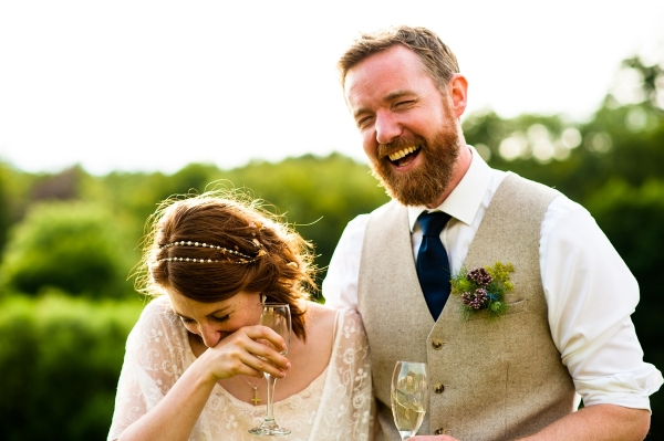 The locally sourced vegetarian canape feast catered for all dietary requirements while reflecting the couple's global adventures, featuring the likes of edible wild flower salad, Tunisian baked aubergine and Nepalese sweet potato alongside a lip-smacking hog roast. Following the feast, an evening of drinking and dancing ensued, complete with an impressive first dance: "We took swing dance lessons in Bristol where we were living at the time so we had a few moves to bust out!" The celebrations finished in fitting style "around the camp fire stargazing with a bottle of homemade cherry brandy!"