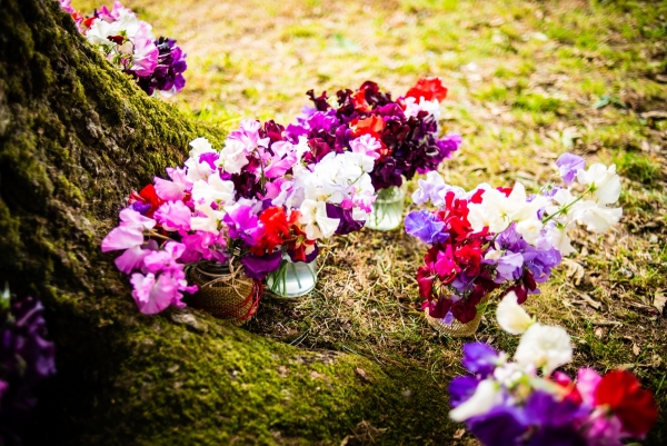 "We wanted the wedding not just to look good, but smell amazing too," she says. From fragrant multicoloured sweet peas grown in a friend's allotment to Rachael's mum's homegrown blooms, the floristry was a sensuous mix that also included alchemilla mollis and love-in-a-mist.