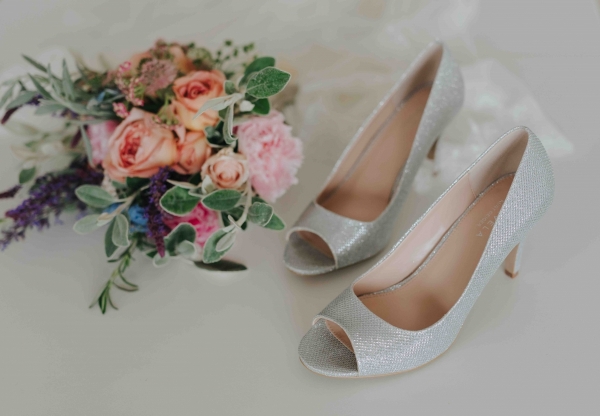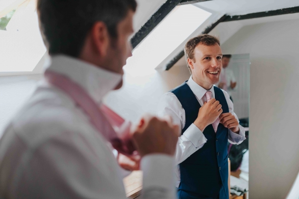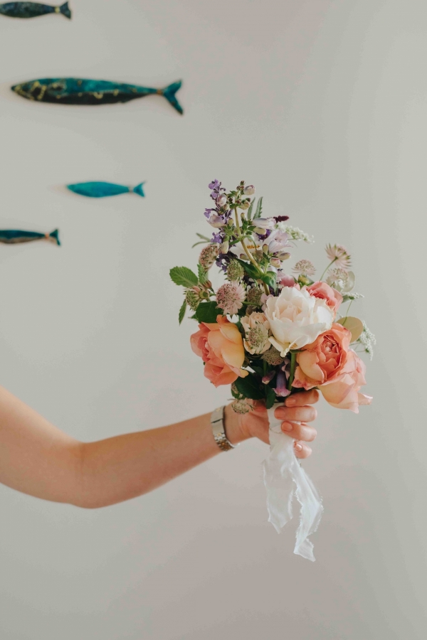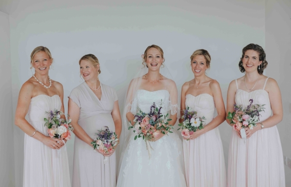Focusing on a "loose colour scheme" of pinks, greys and blues, the day began with Emily getting the couple's six-month-old twins into their wedding day attire, before dressing in her Pronovias gown with flowing train. "It was so much fun to wear such a big dress!" remembers Emily. "When I arrived at the church, there were people waiting outside to see me, and the bells were ringing. The service was really personal and much more moving than either of us expected!"