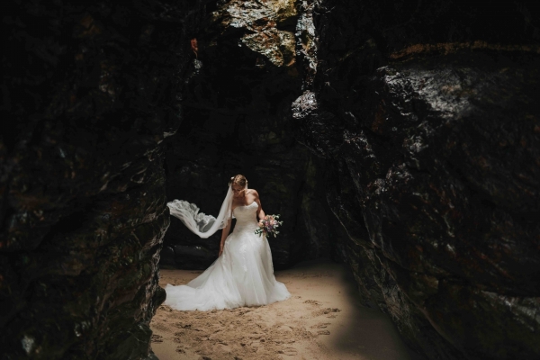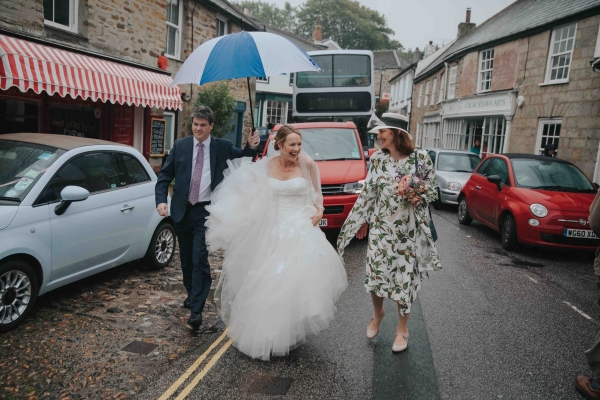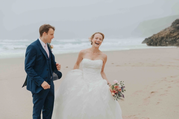However, with the weather not complying on the day - "it was so windy and wet!" - the couple were determined not to let it rain on their parade. "We left in a Fiat 500 convertible," laughs Emily. "With the top down - even though it was raining!" After the service, the couple went down to Chapel Porth Beach for photographs. "It was great - the beach was empty because it was so rainy, and it was great fun just being able to relax and get sand between our toes."