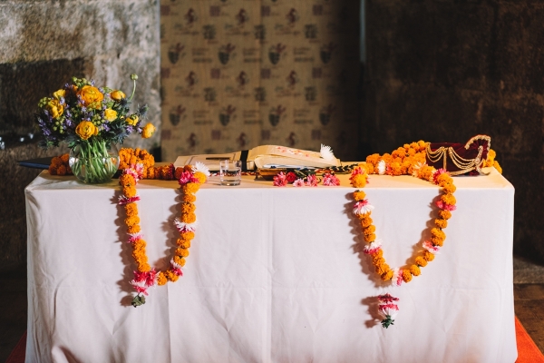 "I took traditions from their two separate cultures to reflect the fusion of the couple into a new tradition of marriage," explains Nicola. "Denise and I were overwhelmed by the preparations the couple had put in place. It looked fantastic, and the groom's family had made marigold garlands for both families and we welcomed them all by placing them over their heads."