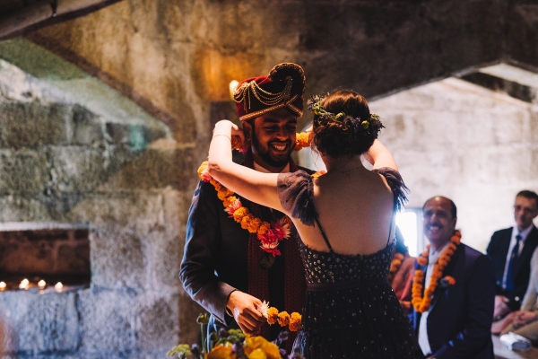 "We called upon the five elements to witness the union, and we lit a Havan (a ritual burning of offerings), and asked Agni, God of Fire, to witness the couple's love as they walked four times around the fire to represent the four goals in life," says Nicola. "We all repeated the Cornish well-wishing as they made their first seven steps as man and wife, each step meaningful in its own right. It was one of the most amazing ceremonies I have ever had the privilege of creating and participating in."