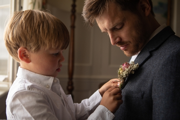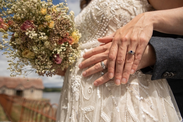 Understated floral arrangements added to the pared-back vibe, with simple white hydrangeas and pots of white heather flanked by a bouquet and buttonholes of dried English flowers. "I loved them and the beauty of dried flowers is that they still look beautiful today," comments Rachel. Mark, a graphic designer for Superdry, poured his creativity into designing the stationery and donned a stylish combo from the brand while Rachel wore a light and beautifully embellished gown.