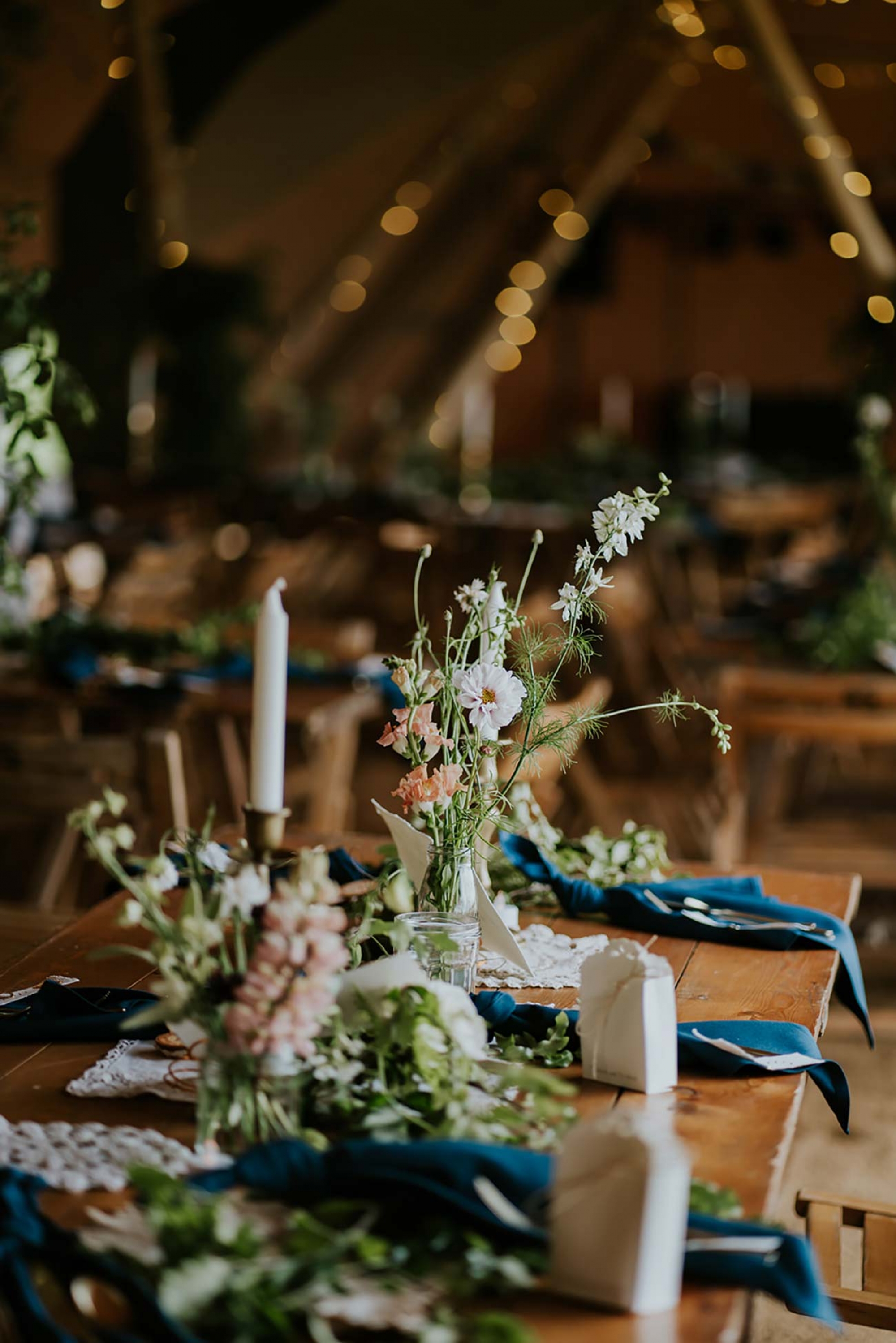 Pitching in to help further personalise the day, friends and family ensured plenty of character was present throughout the details. Beth's cousin baked the cake along with a table packed with tray bakes, cookies and biscuits, while her godmother made 40 metres of bunting that adorned the tipi. In addition, Beth and Ben made their own save the dates, while the invitations featured a beautiful map illustration of Rock drawn by Ben's brother.