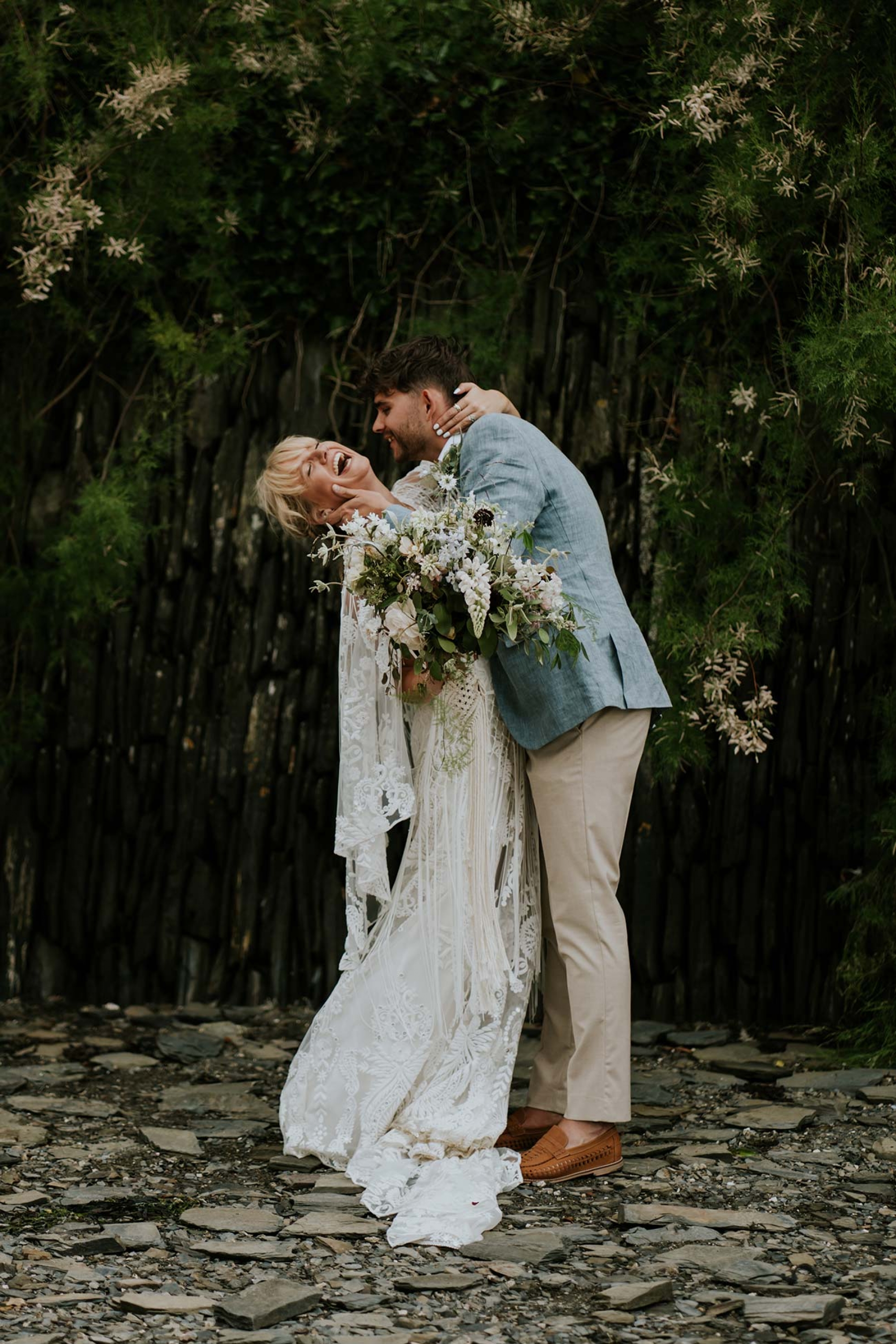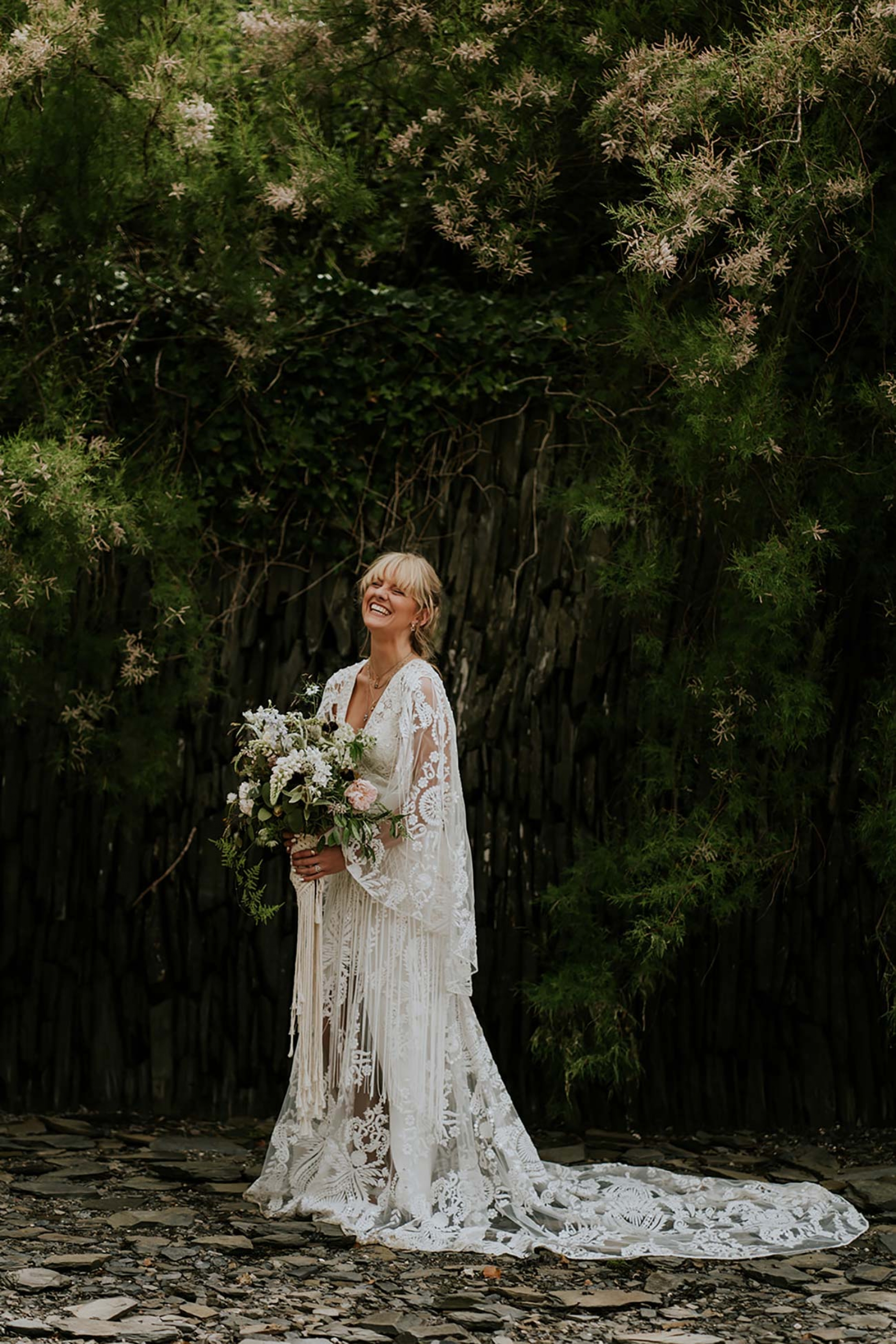 'I have always loved everything boho and wanted everything to look very natural and relaxed, and to be in keeping with where we were, so that really was the theme: beach and boho,' explains Beth whose Rue de Seine gown was the ultimate in beautiful boho style. 'The flowers were Cornish hedgerow inspired so nothing groomed or perfect ' just natural and lovely.'