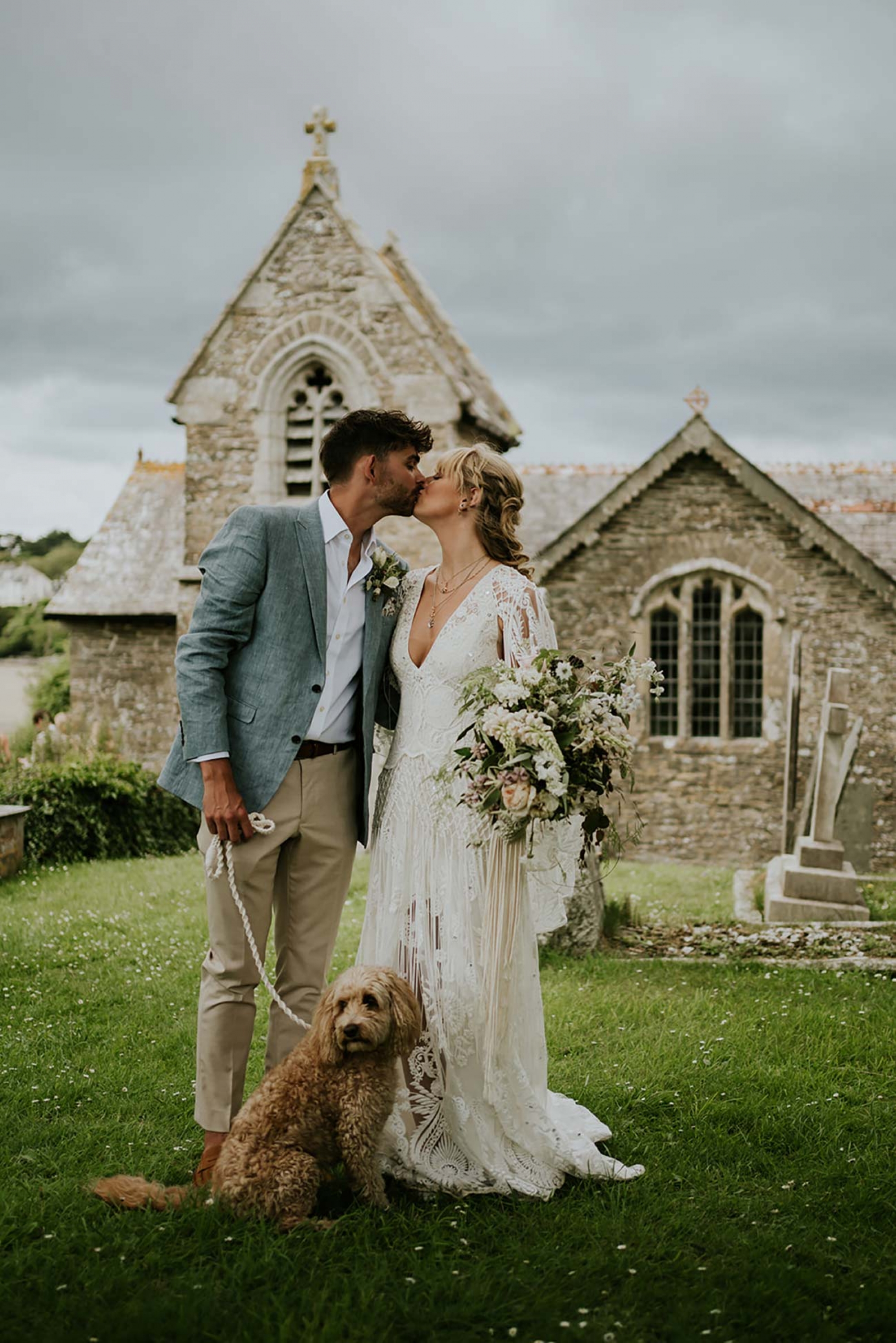 Selecting nearby St Michael's Church in Porthilly for their wedding ceremony, the newly-weds then returned to the beach of their engagement for celebratory drinks and photos before relocating with the rest of the congregation to Porthilly Farm for a gorgeous tipi reception.