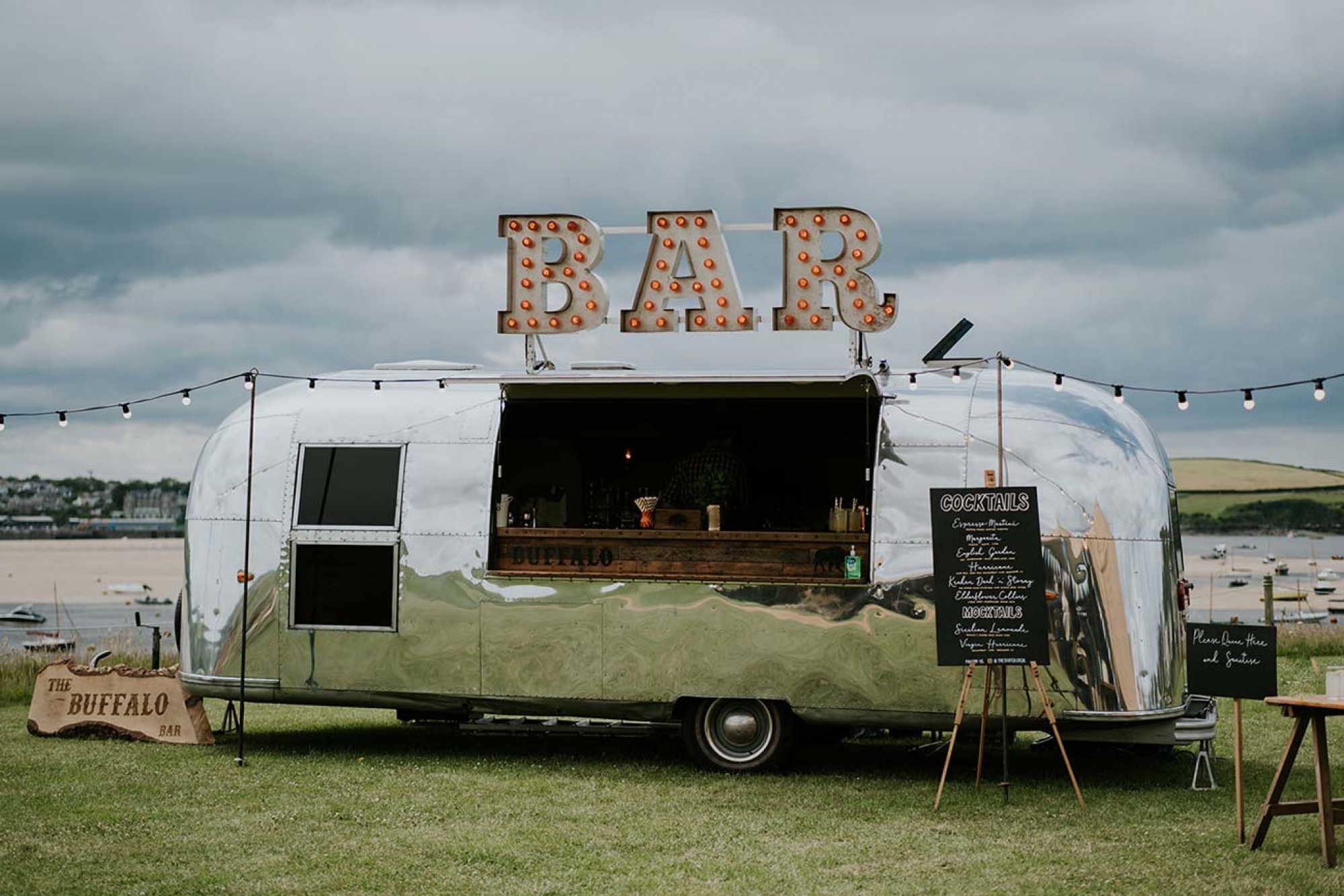 At the farm, Cornish-themed canapés such as pixie pasties and cocktails from mobile Airstream bar, The Buffalo ('the best cocktail menu I have ever worked through!') were devoured ahead of the wedding breakfast. Roast chicken, risotto and a trio of desserts fuelled guests for the two-stage soundtrack that comprised a live performance from The Stowes followed by a set by 'disco funk throwback legend' and friend, Nick Gordon Brown.