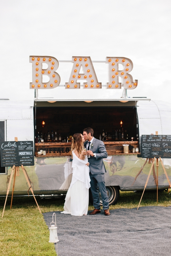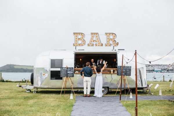 Following the ceremony, guests gathered in the field for a fabulous drinks reception courtesy of The Buffalo Bar, whose converted airstream caravan served Elderflower Collins alongside a selection of cocktails and local craft beers to the sultry sounds of singer, Joss White.