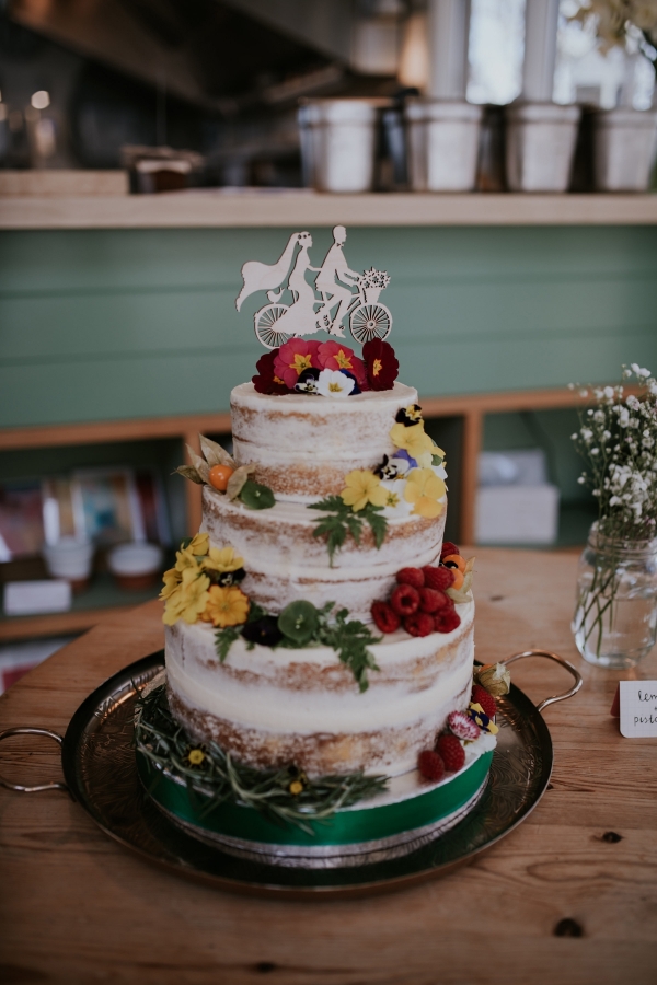 "Food is a big part of our lives, and it was important that it was plant-based and delicious," explains Sarah of their menu that included spiced green pea dip with mini pittas and crispy spinach triangles. This was followed by a sit-down lunch of Maqloubeh, which means 'upside down'. "It's a Palestinian dish and has a great story behind it of the dish falling upside down on the street and people sharing it," explains Sarah. This was accompanied by tahini sauce, roasted almonds, cucumber in coconut yoghurt, watercress salad with pomegranate, pomegranate molasses, home-made chutney and seeded flatbreads. A three-tier cake boasted layers of pistachio and lemon, chai latte, and raspberry and vanilla.