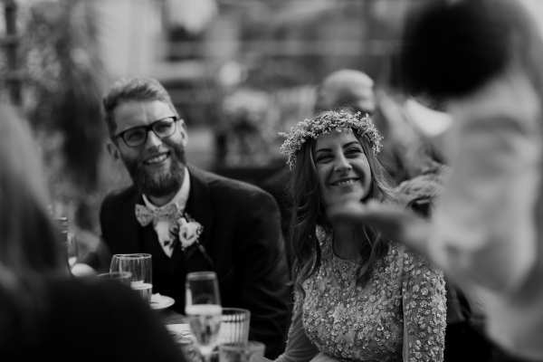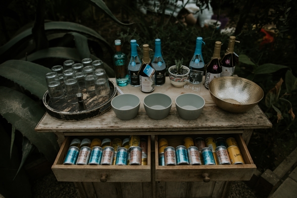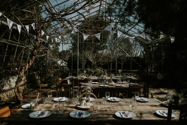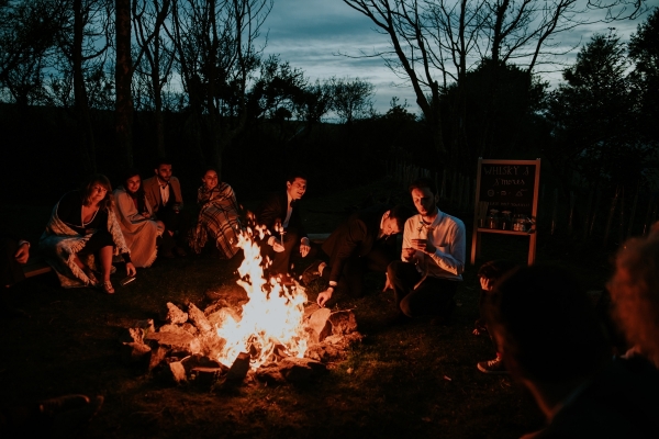 "After lunch, we enjoyed acoustic guitar playing in the greenhouse, while our guests helped themselves to the gin bar," says Sarah. Guests danced and relaxed in hammocks and, as the evening wore on, huddled around the bonfire, enjoying s'mores and whiskey.