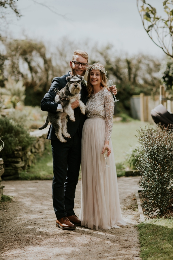 The ceremony was short and sweet, with the couple's dog, Luna, as ring bearer, before the newly-weds and their guests enjoyed champagne and canapes.