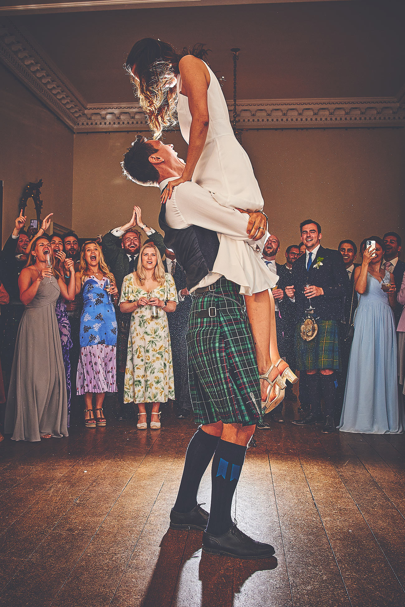 The wedding breakfast treated guests to the delicious likes of seared scallops, roast rump of lamb, caramel poached pear and baked vanilla cheesecake, fuelling guests for the ceilidh dancing and evening disco, which commenced with one of Veronika’s favourite moments.
