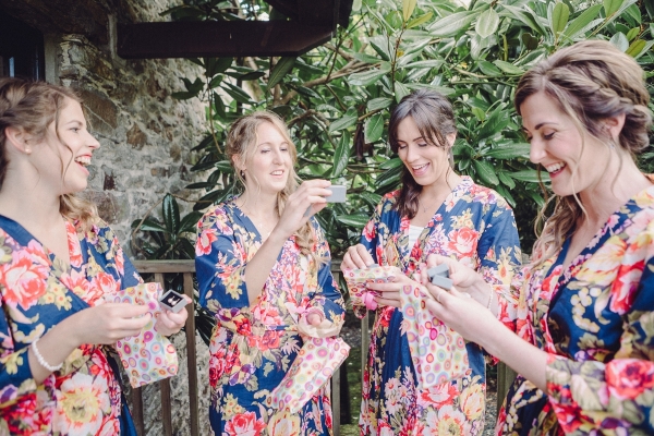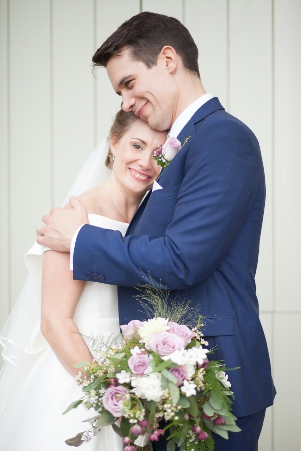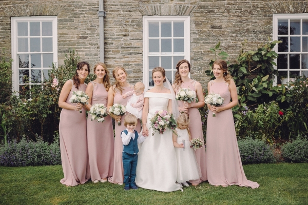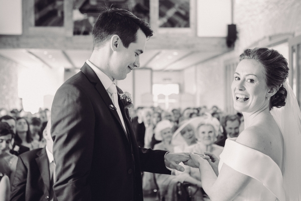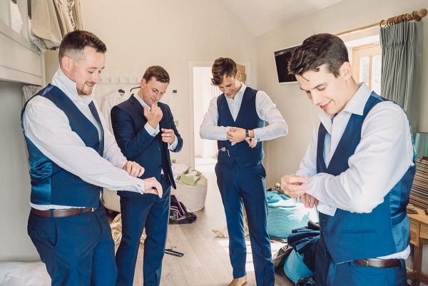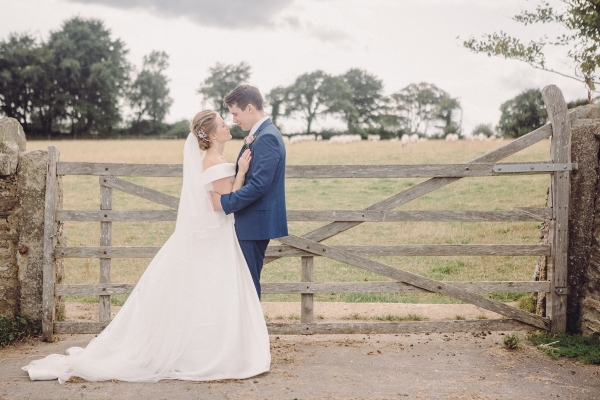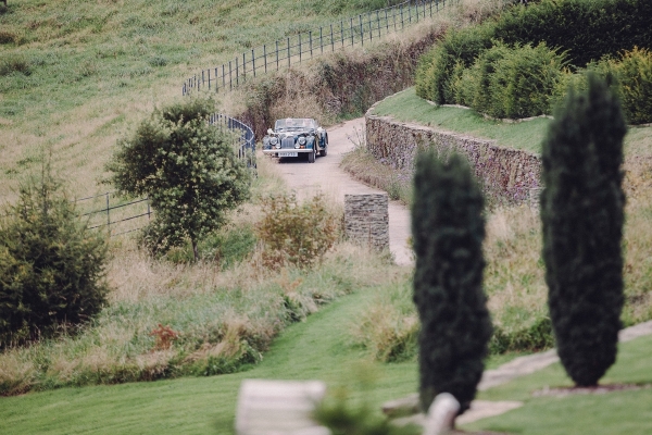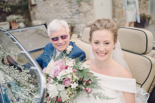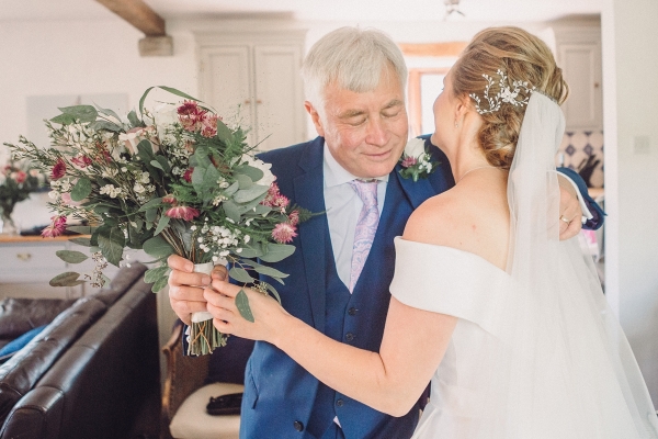 The wedding started with Anna being driven to Shilstone House by her father in a beautiful vintage car. In an ivory off-the-shoulder gown with a long train, customised to incorporate satin buttons down the back from waist to hem, Anna dazzled guests as she walked down the aisle in the barn, to the sounds of a string quartet.