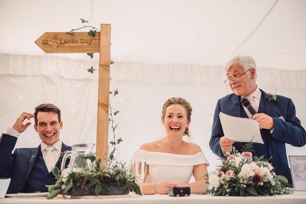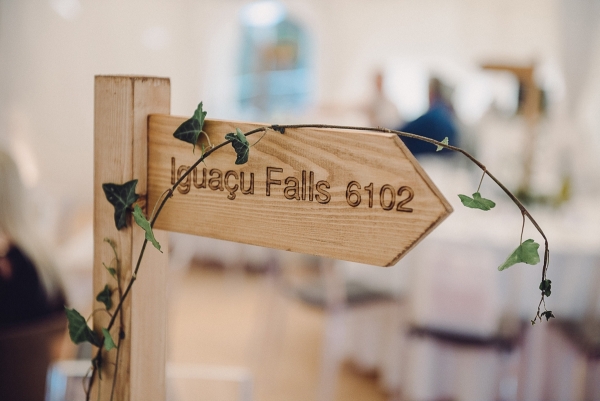 "We are both keen walkers and lovers of the outdoors so wanted the wedding to reflect this," says Anna. "James made mini walking sign posts for our table centres, which were surrounded by wild flowers, and each sign was engraved with the name of one of our favourite walks."