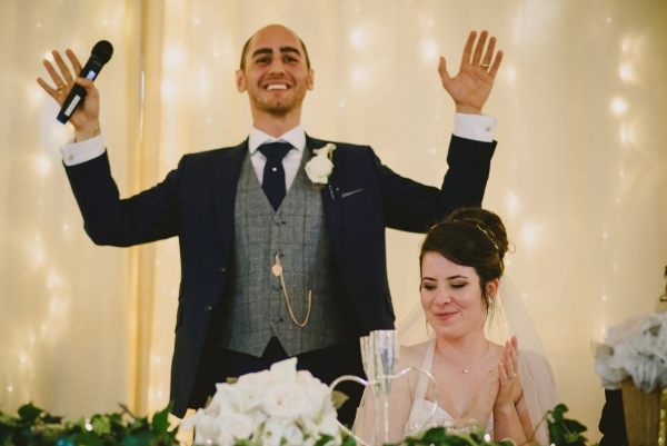 This careful consideration of their guests, punctuated with things the couple love, led to a unique and crowd-pleasing event, where food was another memorable feature. During the reception, a wheel of parmesan and figs were presented in homage to an Italian tradition, alongside fish and chip cones. The sumptuous wedding breakfast comprised an antipasti meat starter, supreme of chicken with wild mushroom jus and fondant potato, and cr�me patisserie-filled profiteroles with a jug of warm chocolate sauce.