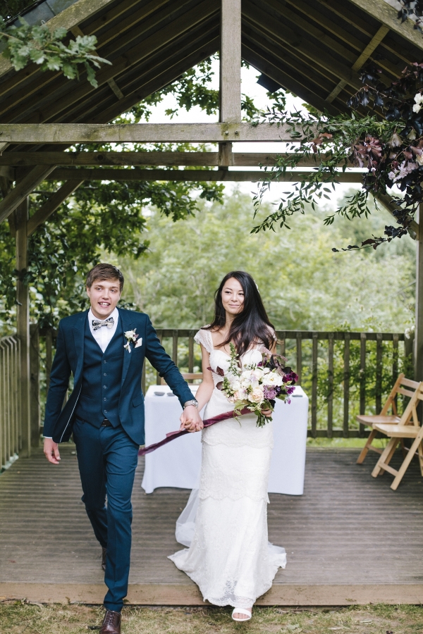 The Green provided the perfect backdrop for the pair's "elegant and natural feeling" event, which featured an array of handmade decorations - "so it felt very 'us'." The fabulous floristry by Laura Hingston - a medley of blooms including roses and foxgloves in a palette ranging from creams to deep wine - was key to the natural, flowing aesthetic. Jasmine wore her long hair in soft curls and a lace gown by Naomi Neoh; not to be outdone, Will donned a textured three-piece suit accessorised with a watercolour bow tie and silk champagne pocket square.