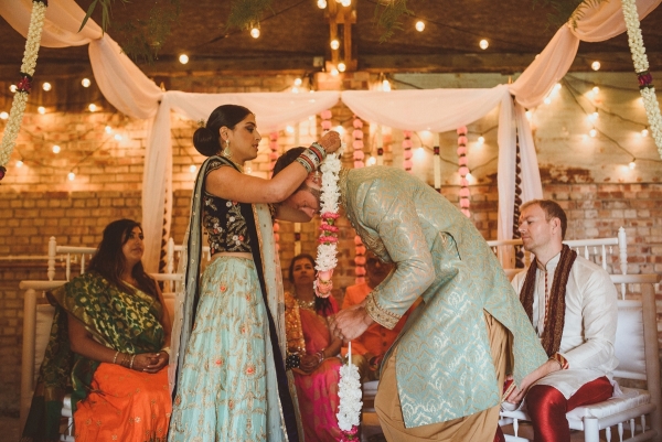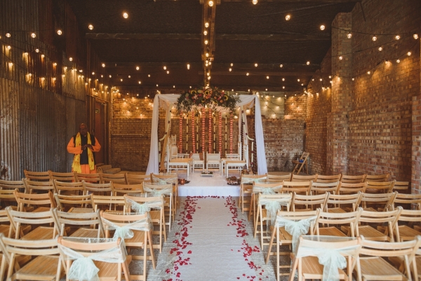 Kejal set about planning their wedding with a very specific picture in mind. "The vision was a fusion of modern, rustic, Indian, countryside vibes that would play on both our cultures. Specifically, with the colours of Indian culture, but the intimacy of white weddings."