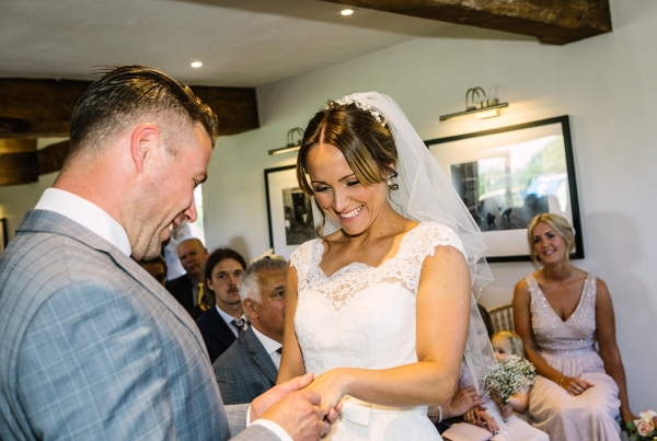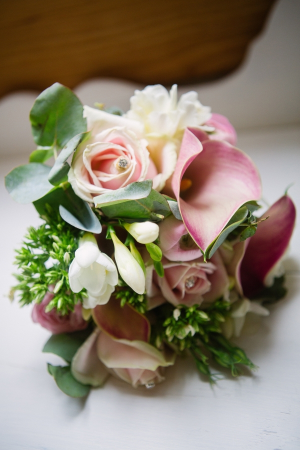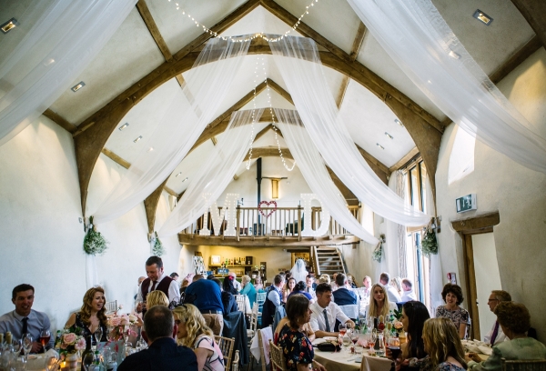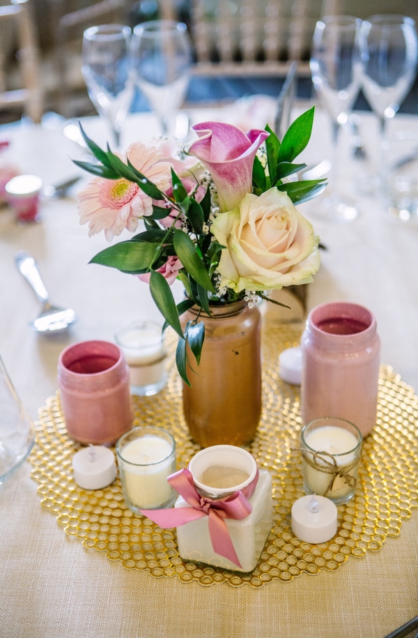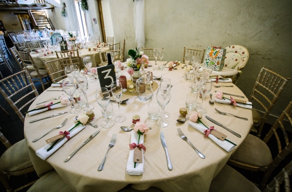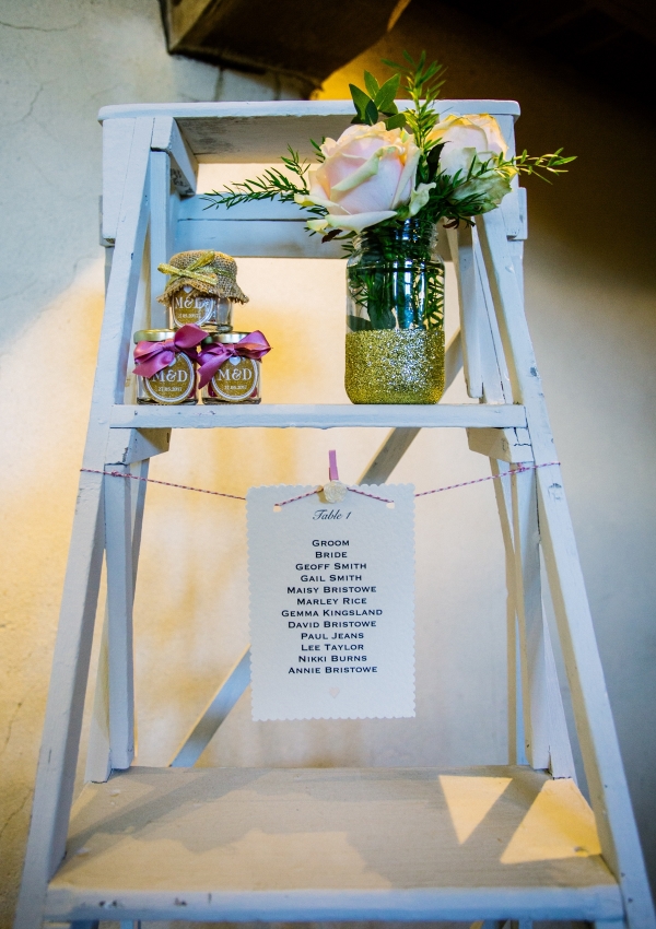 Selecting The Oak Barn for their "rustic and romantic" celebrations, the venue was bedecked with an eye-catching carnival of pink, ivory and gold in a variety of details - especially the floristry. "Roses were a huge inspiration for me," explains Michelle. "I chose and designed exactly what I wanted for the bouquets and table decorations, and my very talented uncle made them."