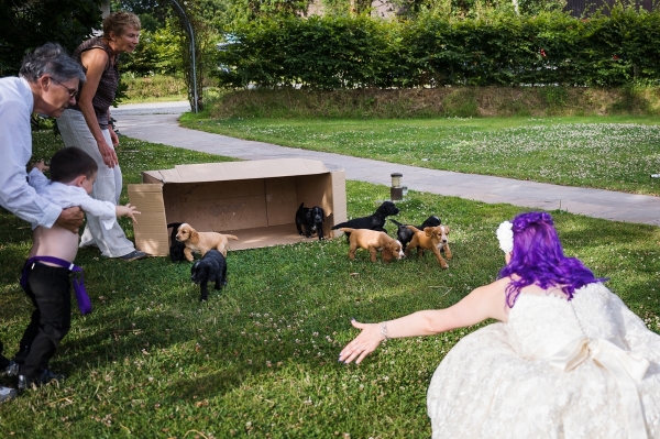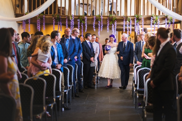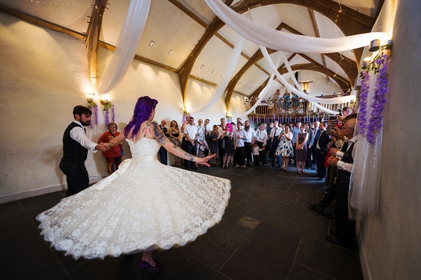 Designing a day around a '50s/'60s rockabilly theme with a colour scheme of black, white and purple, their idyllic rural venue of choice, The Oak Barn, was the setting for a brilliantly entertaining celebration complete with an all-day rock 'n' roll soundtrack.