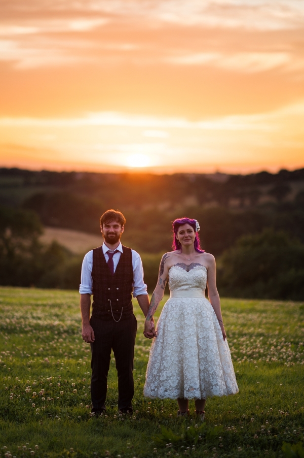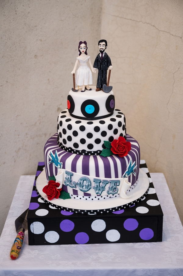 Refuelling in style with an American diner-influenced meal of hamburgers and sausages in buns accompanied by sharing bowls of gherkins, cheese and salad, guests then enjoyed the likes of knickerbocker glory, banana split and fresh fruit salad for dessert. Later, a milkshake stand and hog roast kept revellers' appetites at bay, alongside cupcakes and the rockabilly-themed cake that featured swallows, polka dots and stripes. The party continued into the small hours to Steph's personalised rock, pop, punk and metal playlist.