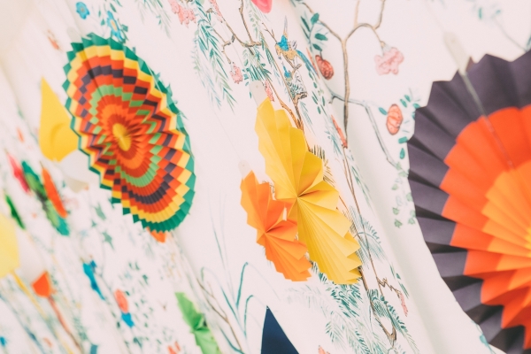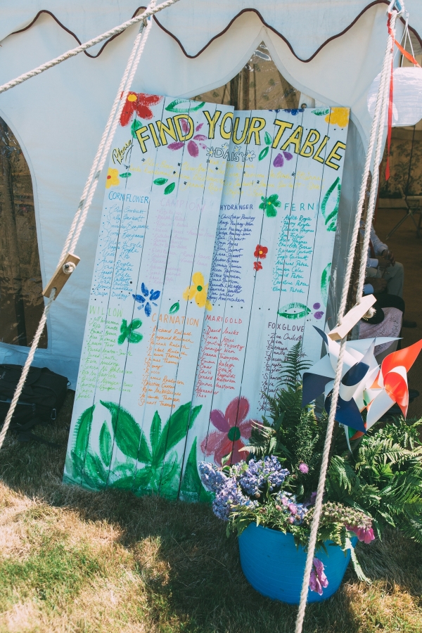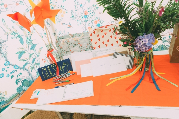 "Our theme was 'everything bright and colourful'," says Kat, and it's easy to see how the styling of their big day was inspired by a total love of prints and colour. As a textile designer, Kat's creative touch was evident in everything from the hand-painted signage to her bright yellow shoes (which came in handy for football as well as dancing!).