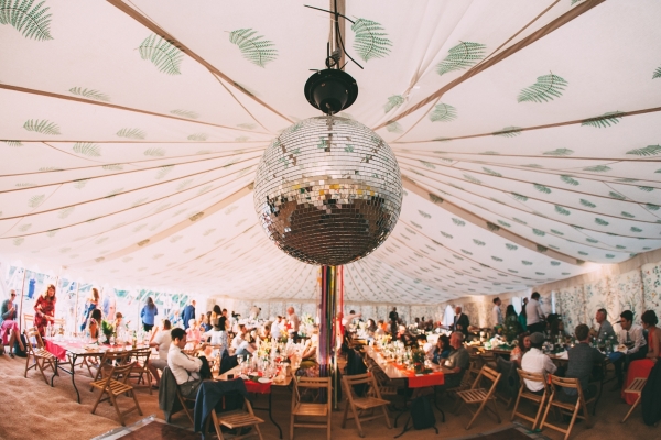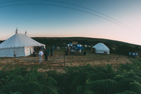 After the wedding, the newly-weds, with a glass of champagne in hand, jumped aboard a Land Rover Discovery to get across the fields to the reception. Their guests walked through the winding country lanes, arriving at the tipi to be rewarded with cocktails and pizza, as the gloriously sunny day brought a festival vibe to the proceedings.