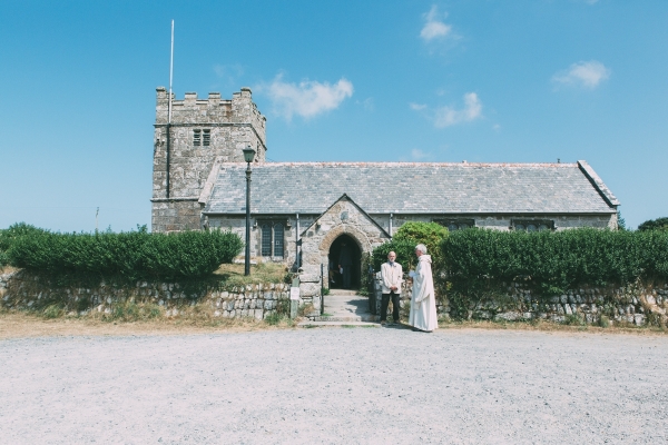 Beginning the wedding with a ceremony at nearby Towednack Church, just a stone's throw from Kat's family home, the super-relaxed bride and groom couldn't wipe the smiles off their faces at the service - especially when their little flower girl started an impromptu game of hide-and-seek during the vows!