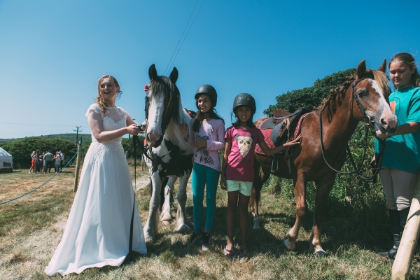 Keen to ensure their day was laid-back, fun and family-friendly, Kat and Rob kept guests entertained with everything from a bouncy castle - which led to groom Rob kneeing himself in the face while attempting a backflip, resulting in a mid-wedding black eye! - to pony rides for the children, and even an ice cream stand set up by the couple's mums.