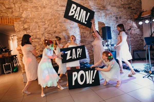 Bridesmaids and groomsmen handed out theatre-style tickets to 'The Table Plan', detailing where each guest would be sat, while table names comprised places from the pair's favourite films (such as Kellerman's from 'Dirty Dancing'). Even the photo booth frame for guests was in the style of a clapperboard and film reel.