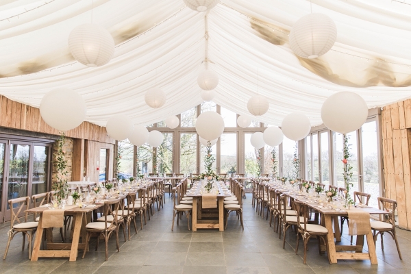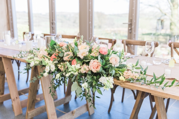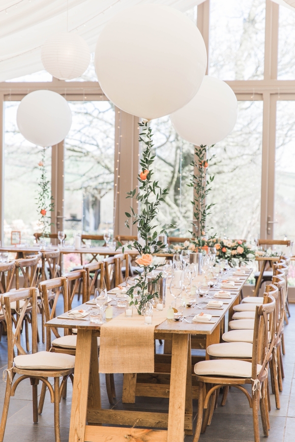 The couple, who met at work, started planning their wedding at Trevenna, with a theme of "relaxed, rustic and elegant" allowing them to have fun with the styling. A colour scheme that included "green, coral, peach, white and rose gold" meant the wedding was a beautifully designed affair, especially once they factored in one particular non-negotiable styling element: "giant white balloons"!