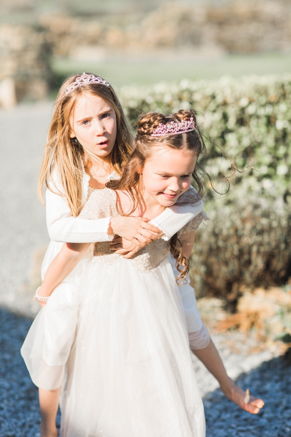 Flowers and foliage played a big part in their day, with a special focus on peach spray and David Austin roses, coral ranunculuses, white double lisianthuses and spray roses and ivory snapdragons, alongside silver and green eucalyptus and olive foliage.