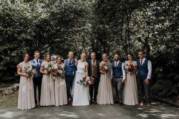 Trevenna provided the picturesque setting for their late September wedding, which was 'inspired by nature: kind of rustic, but filled with warmth and hygge', explains Rachel. A carnival of seasonal flowers reflected the turning of the season, with foliage in soft coppers and burnt tones, and dahlias in muted hues interspersed with pops of coral.
