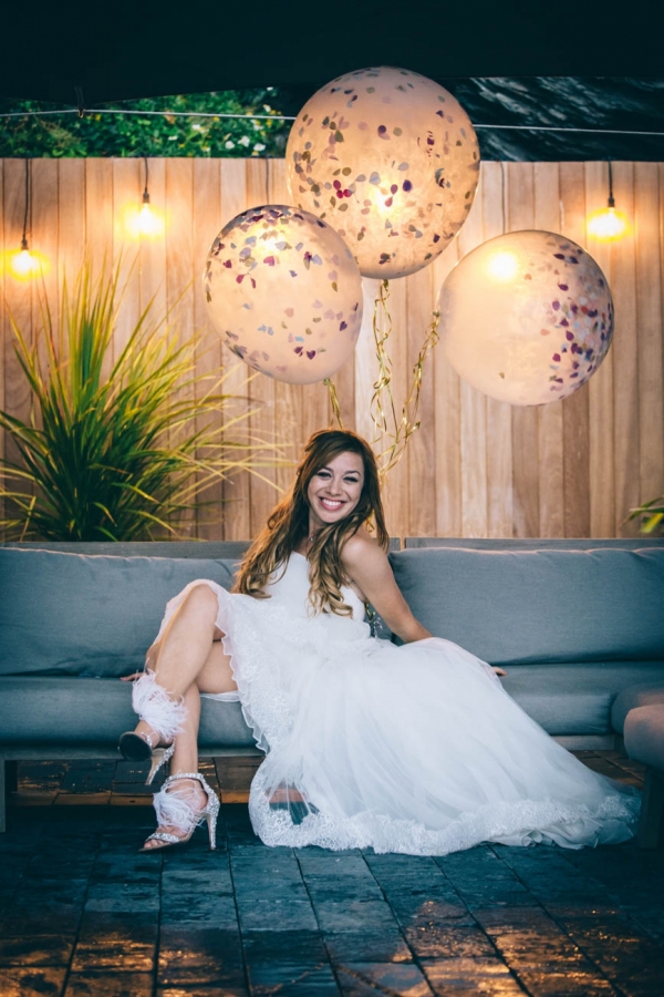 showstopping entrance. "It was so wonderful to walk down the aisle with my dad, as my brother Glenn rocked out on the guitar with my nephews and nieces proudly walking ahead with their little placards saying 'Uncle Brett...Here Comes Your Bride'," she recalls. "Fabulous memories to cherish."
