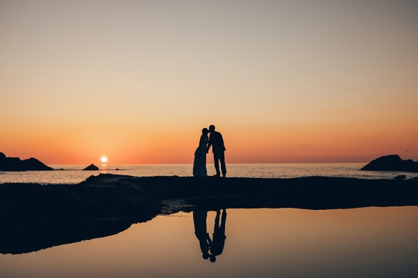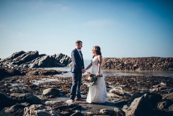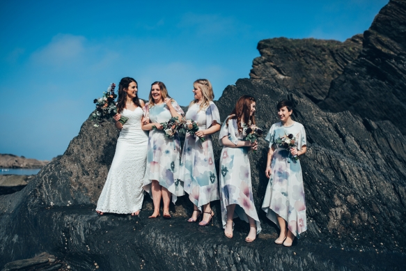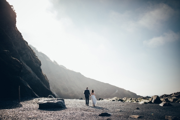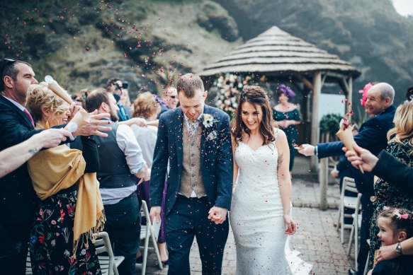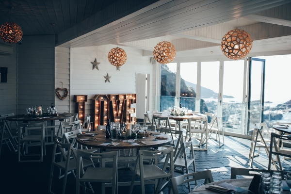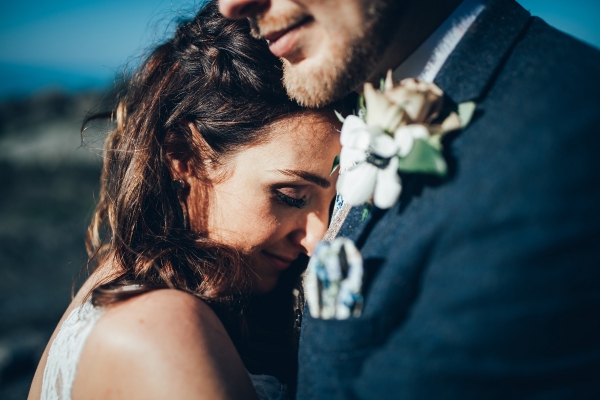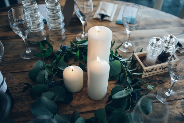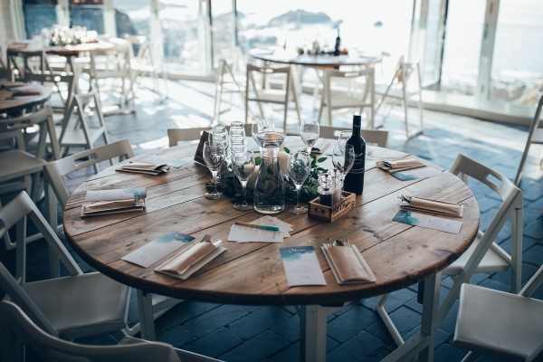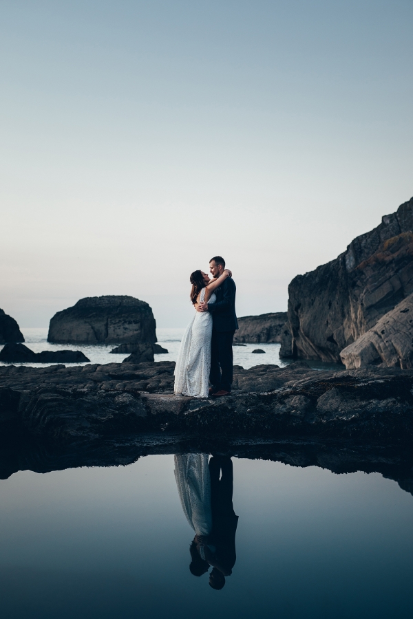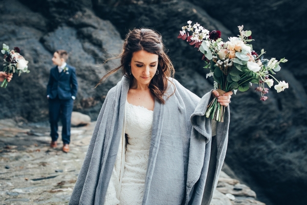 'Growing up surfing, and travelling to surf and be by the beach, all I had ever imagined for my wedding was the beach,' she says. Located within touching distance of the Atlantic Ocean, Tunnels Beaches perfectly set the scene for their coastal celebration. A palette of watercolours was selected to fit the oceanic theme, with pared-back décor comprising lots of fairy lights and white candles and foliage for centrepieces. 'I was going for chic and natural so the main focus was the ocean outside,' explains Amy.