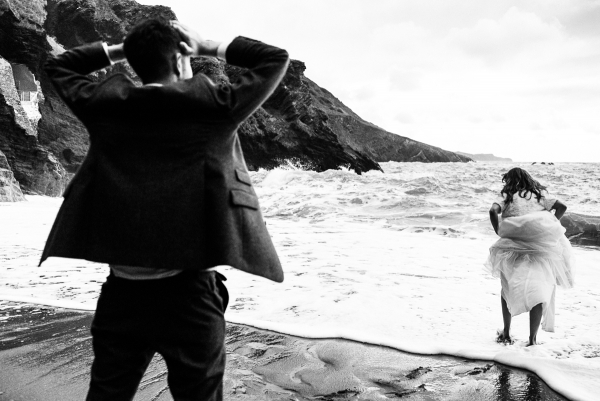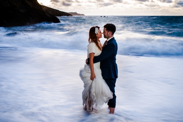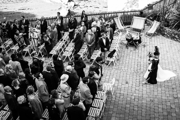 The newly-weds ventured off for some windswept photos in VW campervan, Ernie, as guests enjoyed the coastal views alongside drinks and canapes. On their return, everyone tucked into a gourmet barbecue buffet and Devonshire ice cream served from a mobile cart.