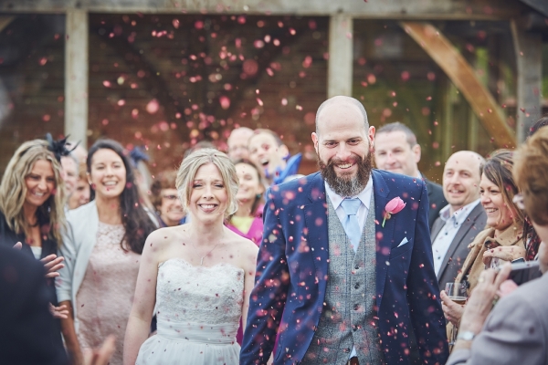 Their chosen venue, Upton Barn & Walled Garden, lent itself to rustic styling, and the couple opted for navy, pink and cornflower blue as a colour scheme - with one notable addition.