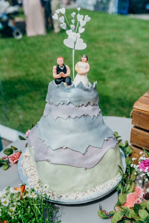 The evening comprised the cutting of the cake - an artistic creation by Jo's friends representing her mountain-top proposal - as well as scones, pasties, more live music from Jo's family, and a dance floor-filling set by band, Sons in the Wild.