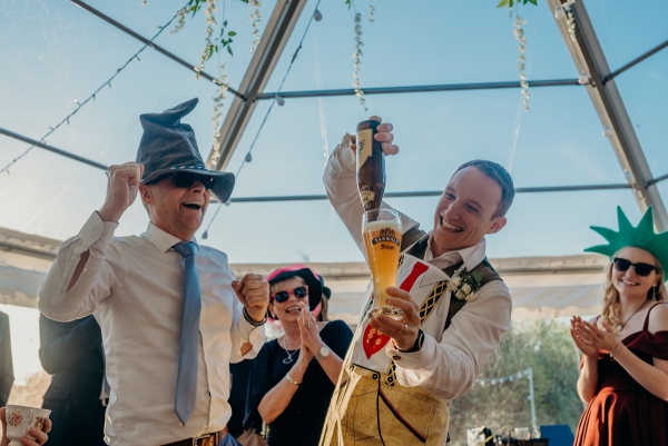 "People were sat in the sun on hay bales drinking rose and cider, then my German family put on a funny play (a German tradition) which resulted in me doing a German shot and Tom downing a German weissbeer!" adds Jo.
