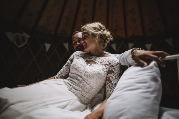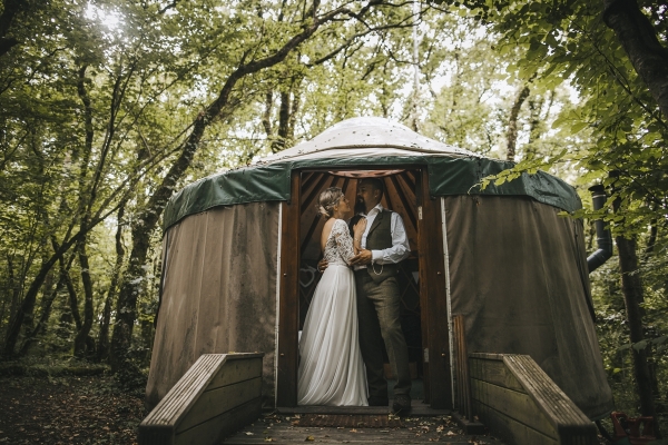 Paris soon came across Yurtcamp; set amidst acres of wildly beautiful woodland, it provided the perfect setting for the couple's laidback weekend of festivities, where live music and an outdoor ceremony contributed to the festival feel.