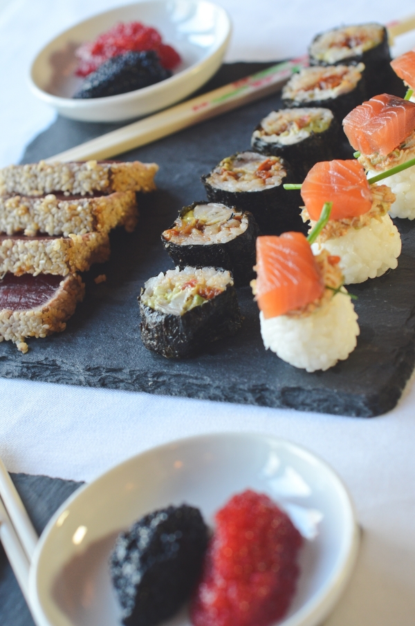 Then there's a host of tantalising new additions inspired by their travels and weddings they've catered for over the past year, beginning with canapes such as mini smoked and fresh mackerel, fennel and caper toasted open burgers; pan-seared seasoned calves' liver crostinis - a classic Pintxo from northern Spain - and deep-fried Cornish Boilers Ale beer-battered oysters. Catering for a Japanese themed wedding in 2016 has inspired Sarah and Lucy to add a sensational selection of sushi to their offerings. There are also some tasty new vegetarian dishes which pack a colourful punch; think home-roasted vine tomatoes, mixed bell peppers and griddled halloumi salad and baked bell pepper with a roasted courgette, aubergine and red onion stuffing. Yum - consider your guests well and truly wowed.