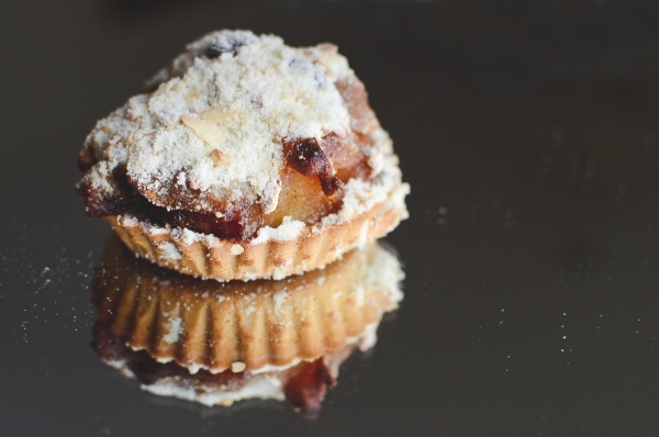 Vanilla ice cream, brandy and a cocoa snowstorm, served with a spiced apple and muesli crumble tart