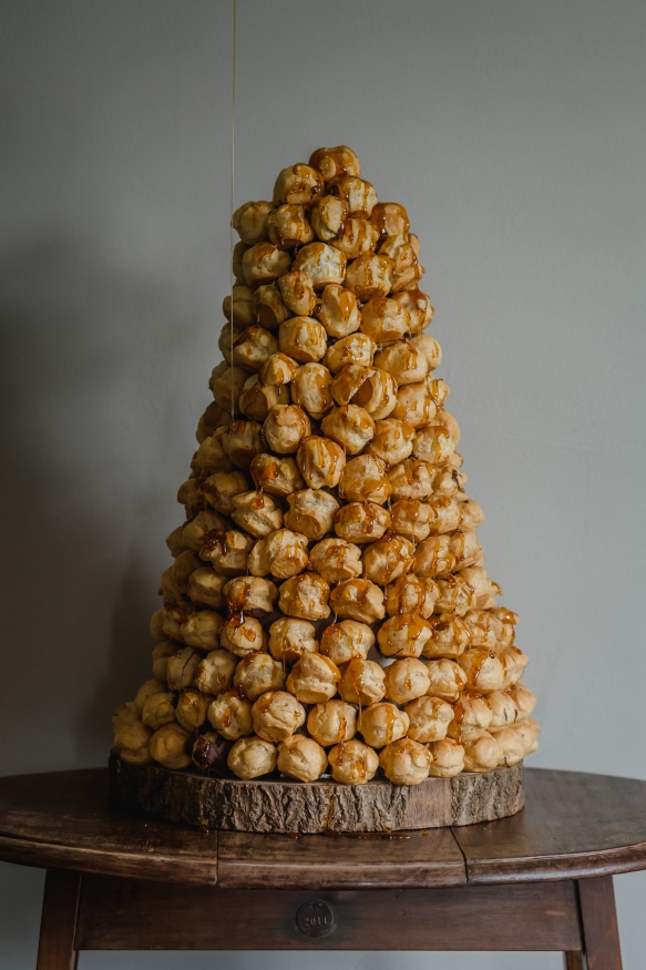 There's something eye-catching and oh-so impressive about a croquembouche - a towering mountain of choux pastry profiteroles covered in caramel. As well as being an elegant centrepiece on a cake table - how good does this one from Trevenna (trevenna.co.uk) look on a rustic tree log? - they also add an element of interaction with your guests as they pull a profiterole from the pile. And did we mention they're moreishly delicious?