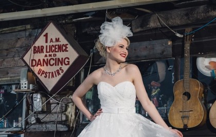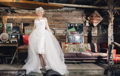 Rock the aisle in a flirty 50s style frock, playful headwear and a sprinkle of attitude